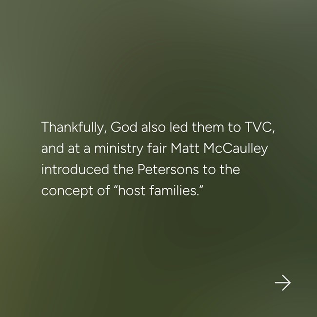 David and Tami Peterson are creating a legacy of ministry through the simple act of opening their home. “All you have to do is open your front door and let some people in.” – Tami Peterson